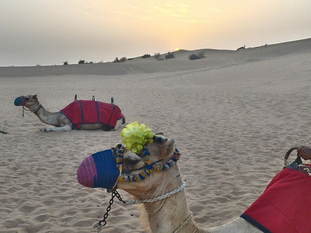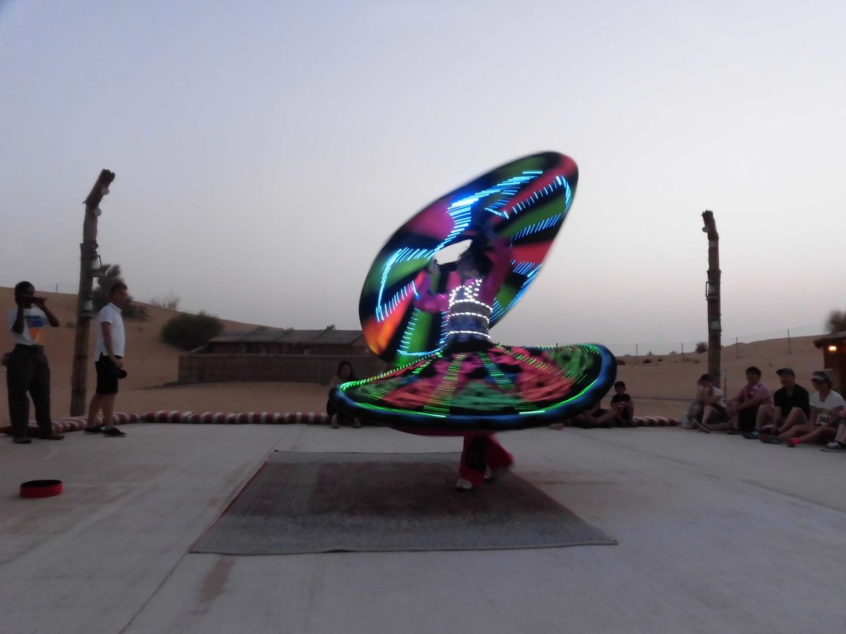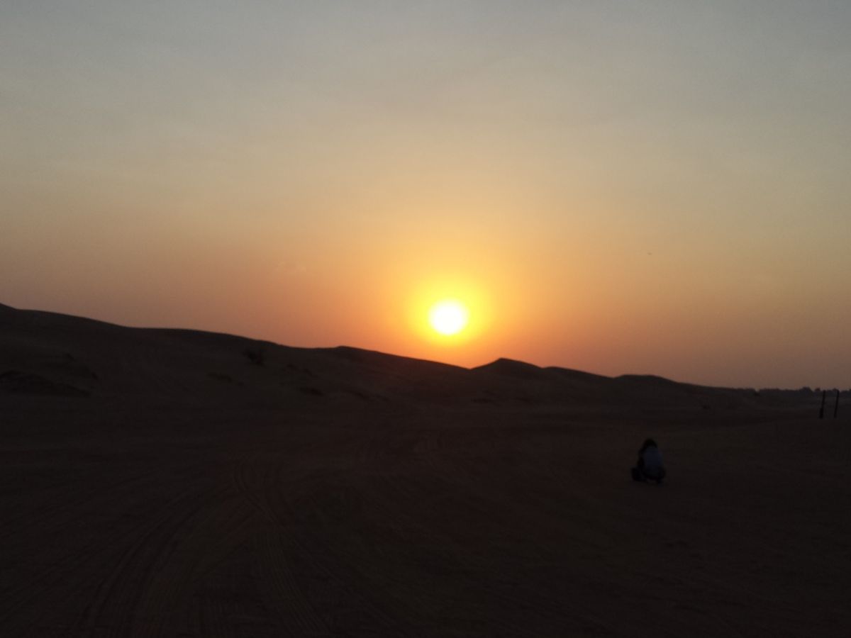 ドバイから1時間位で砂漠地帯に到着しました。砂漠の入口辺りは柵で囲われていて、砂漠が保護されている⁉と不思議な感じでしたが大丈夫、しっかり砂漠でした(笑)途中ラクダの写真を撮れたり、鷹のショーが見られますが、早い英語です。ちなみに砂漠は、街中より気温が高く8月では40度を軽く超えるそうなので、暑さ対策が必要です。ちょうどサンセットが近い時間帯なのでサングラスもあった方が楽しめると思います。