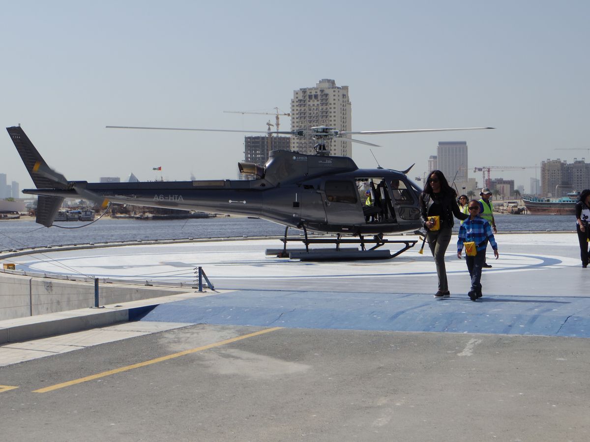 新婚旅行でドバイにいったときに夫婦で参加しました。体重測定の結果、幸運にも私たちは前の座席(パイロットのすぐ隣)に座らせてもらいましたので、大迫力でドバイの街を楽しむことができました。当日は少し砂埃が舞っていましたが、それでも十分満喫できます!どうせ乗るなら22分コースがオススメです!見どころは個人的にはパームジュメイラが圧巻でした!