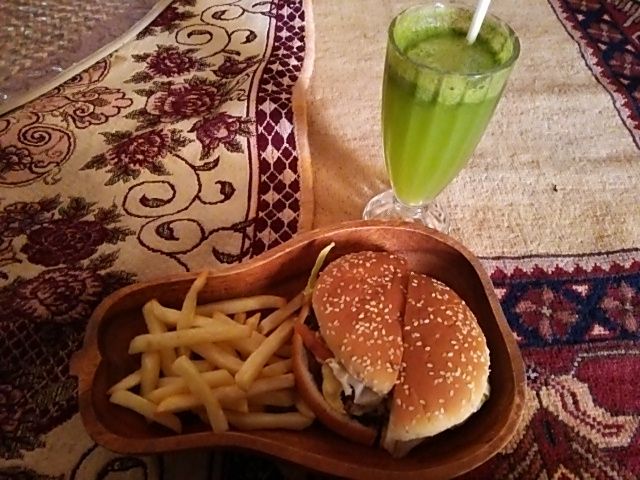 ランチは貸し切り部屋でラクダバーガーを頂きました。同じツアーの人たちと談笑しながらゆっくり休めました。