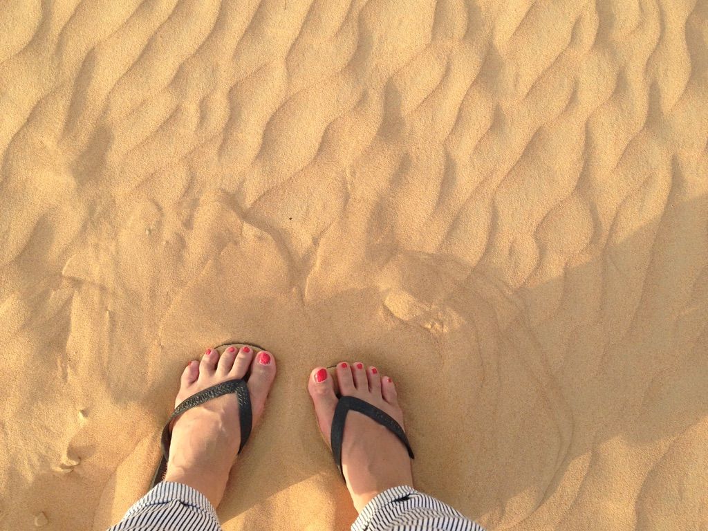 砂漠の砂はさらさらで裸足になって歩くととても気持ちよくて、夜になると気温が下がるので、砂も冷たくなり、昼間はあんなに暑いのにちょっと不思議な体験でした。