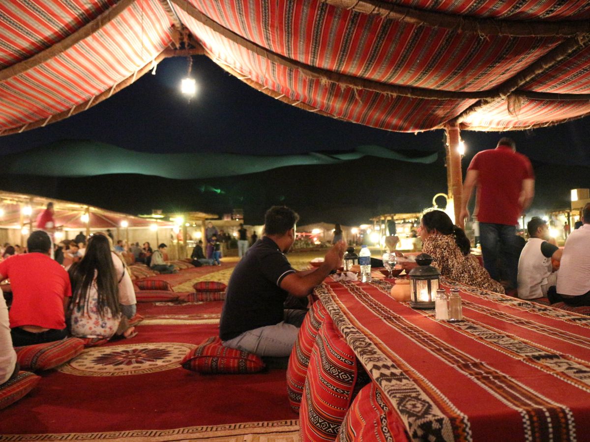 ツアーに出発後は、砂漠をたっぷり四駆車で駆け回り、ポイントポイントで降車し、砂漠を歩いたり、写真を撮ったり。日本では体験する事の出来ない一面に広がる砂漠体験に大興奮でした。そして、砂漠におちる夕日はとってもきれいでした。キャンプ地には、ヘナペイントや水タバコ体験が出来るテントが並んでいて、自由に体験出来ます。ラクダ試乗体験もあります。ビュッフェ形式のアラビア料理のディナーと伝統的なダンスショーも観られて、砂漠でのアラビアンナイトの魅力がぎゅっと詰まっていて、大満足の内容でした。