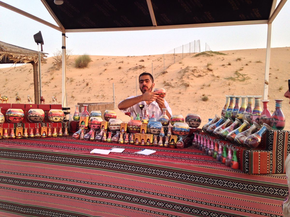 車で砂漠を走る他、ラクダを近くでみられるラクダファームによったり、自由にキャメルライド、水タバコ、サンドボードを体験することができました!お盆期間中に行きましたが混んでおらず全部体験できました。オリジナルのサンドアートを作ってくれるお店もありましたが高いので欲しい方はスーク等で買った方が良いかと思います。カップルでキャメルライドする方はツアーの人が写真をとってくれますが、その写真が欲しい場合、他の方の写真も入った高いデーターを買わなければならない…ということになってしまうので一緒にツアーに参加されている方に頼むといいかもしれないです。日本語ツアーではなく英語でしたが全然大丈夫でしたよ。