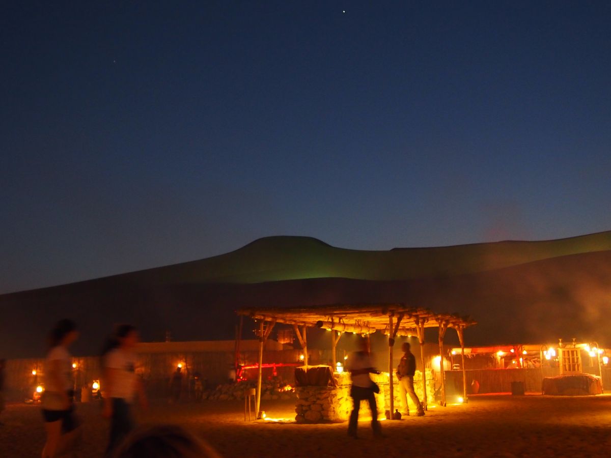 日が暮れるとBBQが開始になりますが、料理はそんなに期待するほどではないです。サラダと肉(ラム、ビーフ、タンドリーチキン)とカレーくらい。ラマダンの時期だったので、アルコールの提供とベリーダンスはありませんでした。