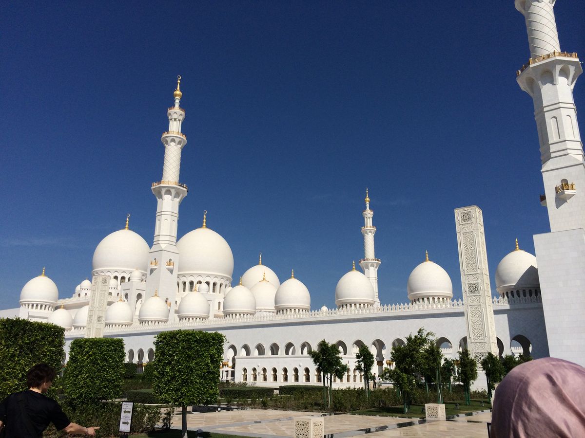 真っ白のモスクと真っ青な空、とても綺麗です。ドバイに行かれた際はぜひおすすめです。
