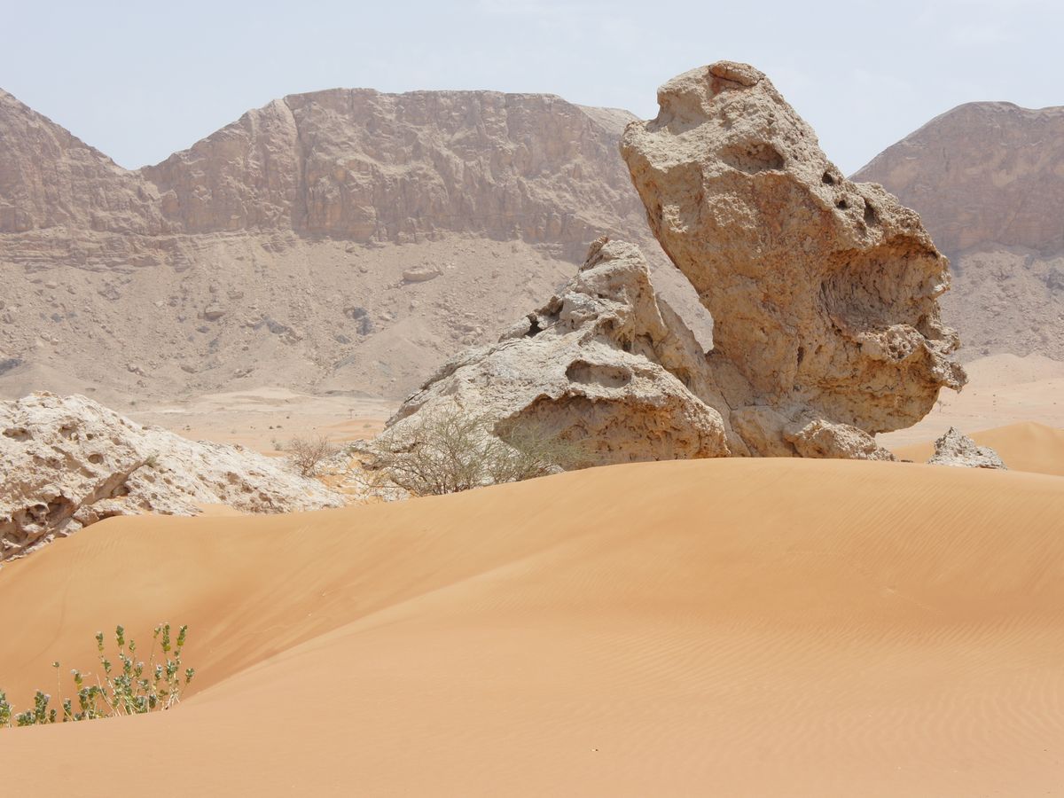 日中の砂漠では、歩いて足に砂が付いたものなら熱いのなんの!!