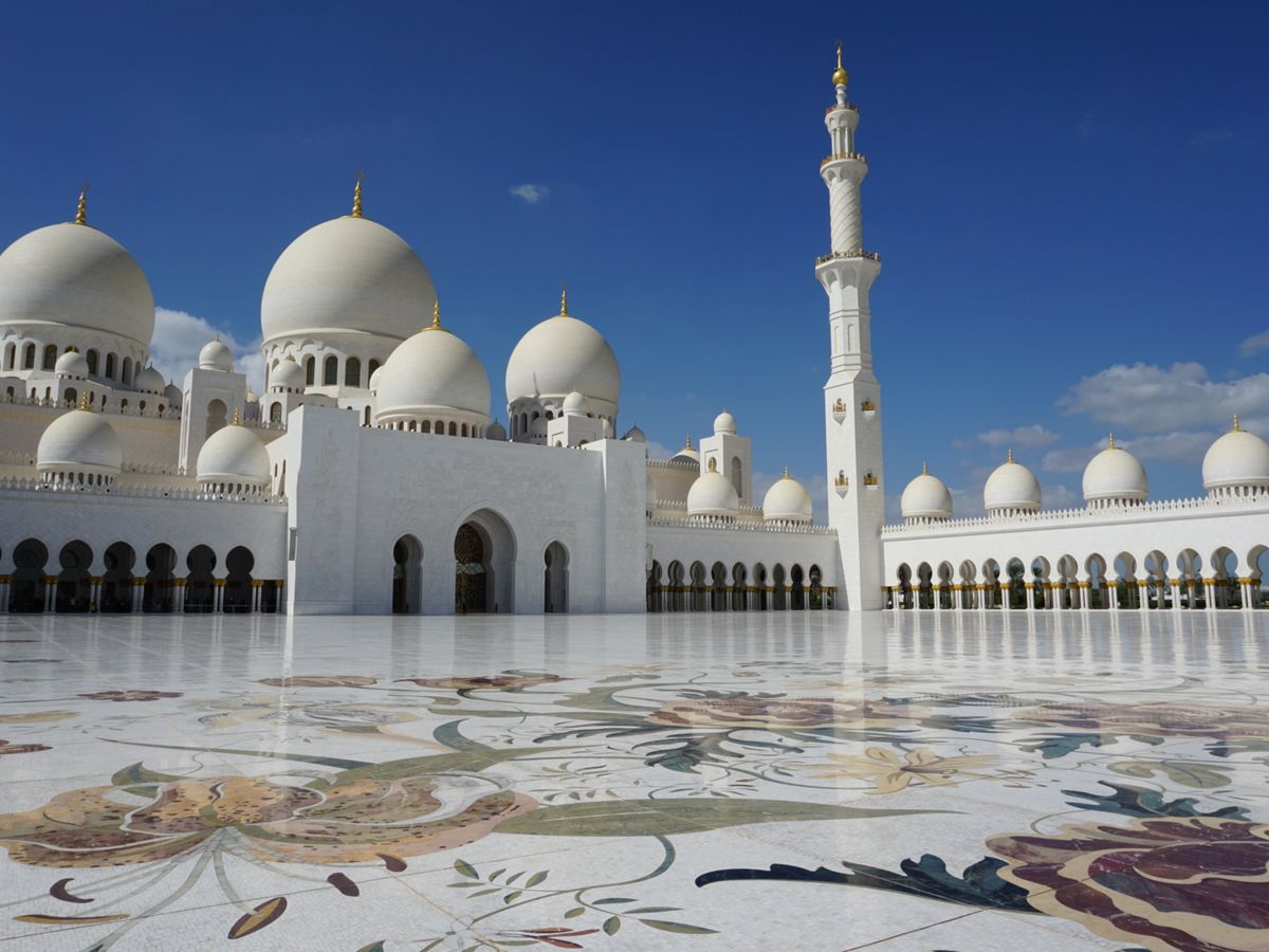 ホテルからアブダビまで車で1時間40分程でした。グランドモスクはとても綺麗で、ちゃんと順番に進んでいくので迷うことなく見学できました。服装は思ったより規制が緩かったです。