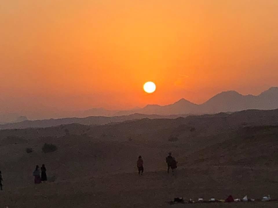砂漠の中でサンセットが見れました。