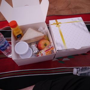 お弁当BOXはボリューム満点、ドライバーさんお手製のコーヒー、短時間で砂漠を満喫でき、短い滞在の方や・効率的に観光したい人におすすめです。