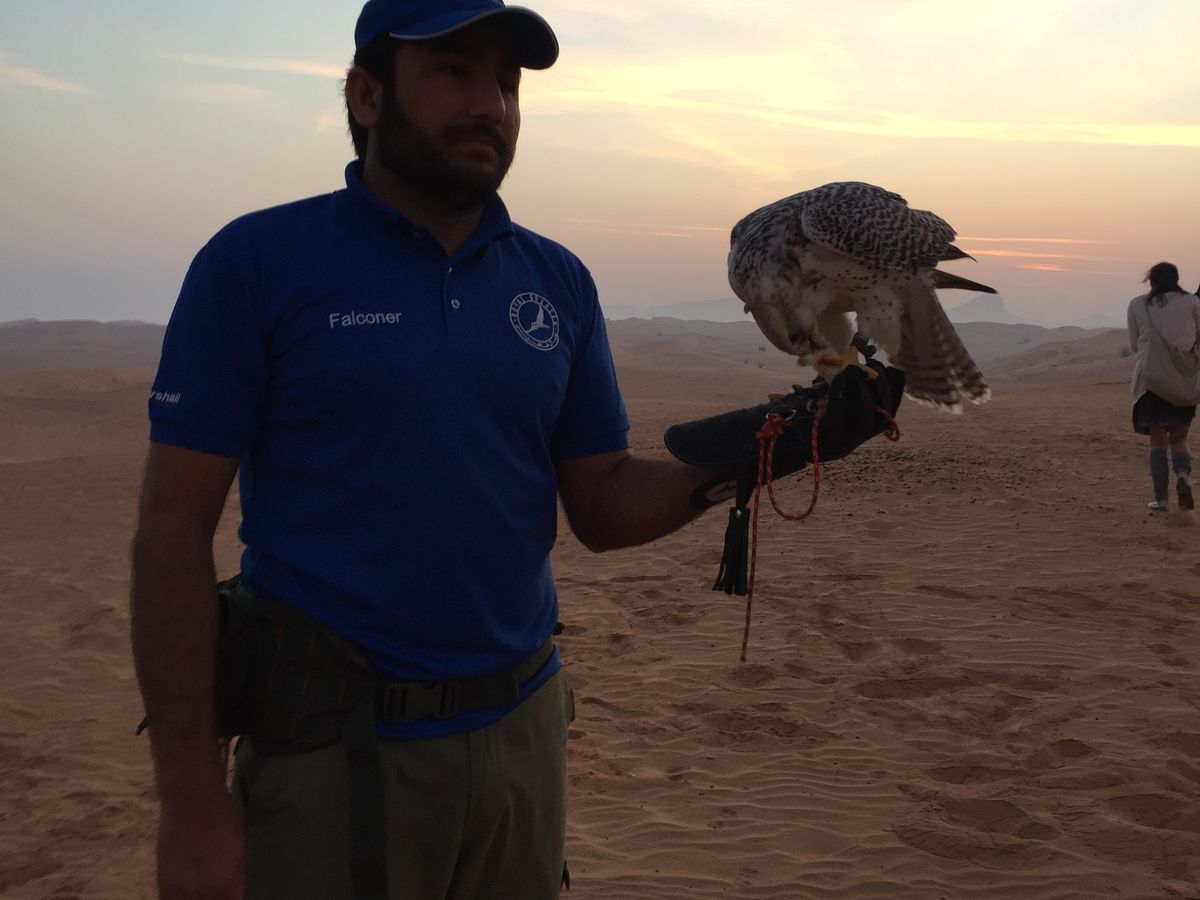 砂漠では、ボードですべったり、鷹の説明(英語)を聞いた後、実際に