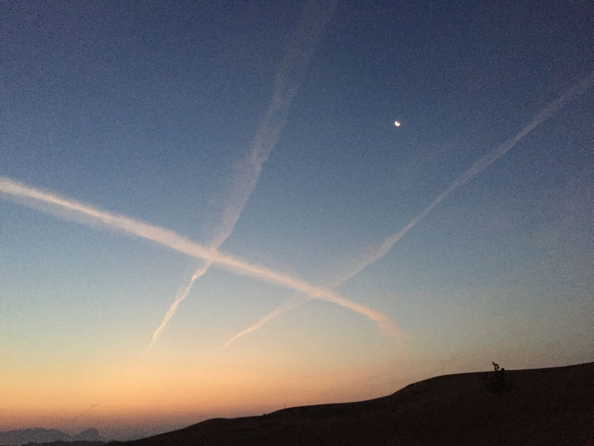 日の出はまだで、真っ暗な中、車のライト、月と星だけの光、思っていたより寒くなく音も無い気持ちいい空間です。