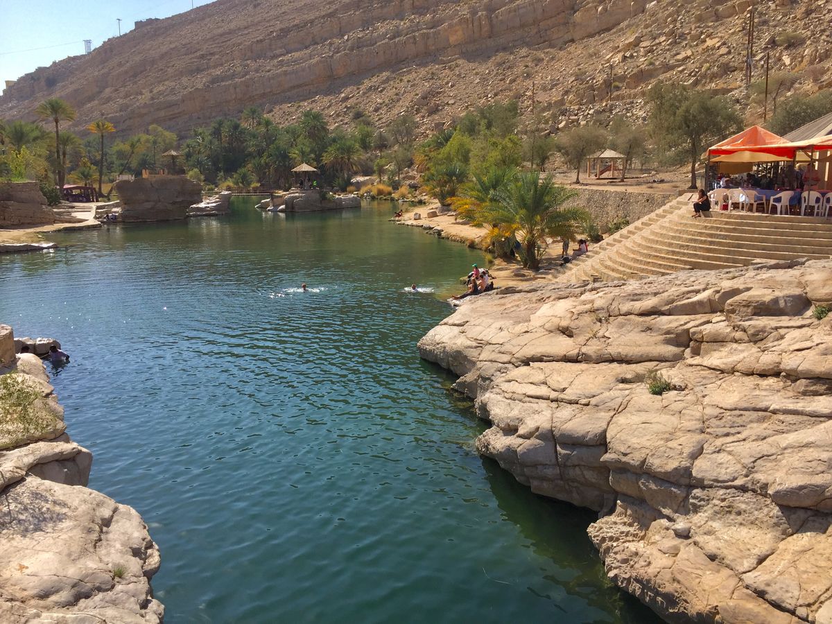 ワディシャーブは、最初は非常に谷が深く、また幅が広いので、トレッキングのように奥までずっと歩いていくことになります。そして、かなり幅が狭まったところで水があり、泳ぐことが出来ます。水は最初はゆったりとした流れですが、最後の滝つぼの手前では、人がすれ違えないほどの狭い場所があり、かなり流れが速くてびっくりしました。景観もよく、アクティブに楽しめるところもあり、やはり非常に良いところでした。