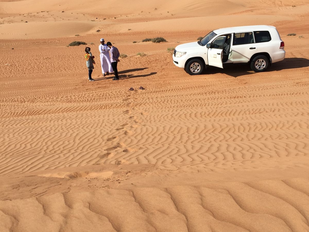 砂漠はスニーカーだと、砂が入ってくるので、サンダルの方がよいと思います。