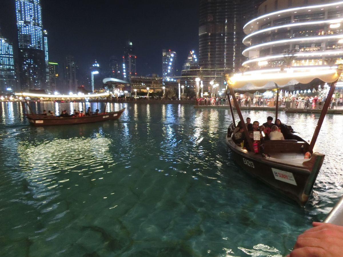 お昼は、レストランで噴水を見て、夜はバージカリファから見て、更にフネに乗っても見ちゃいました!バウチャー は、バージカリファ展望と同じ受け付けですが、乗り場までは少し距離があるのか、フネに乗りたい迷子を、数組見ました!