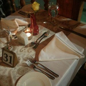 私たちの時は、多分客の数が少なかったから、1階はテーブルセッティングされておらず、全員2階に座りました。はじめは薄手のカーディガンを羽織っていれば十分だったのですが、10時半頃には冷えてきて、上着が必要でした。