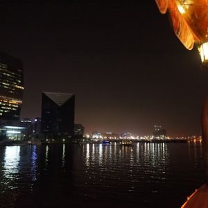 ディナーを食べる席は1階の船内でしたが、2階のテラス席で風を感じながらのクルージングはとても気持ちよかったです。オールドドバイ地区をゆらゆら揺れて進みます。夜景も綺麗だし、すれ違うダウ船もとても綺麗でした。最終的にはほとんどの人がテラスでくつろいでました(笑)