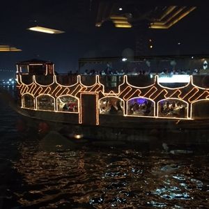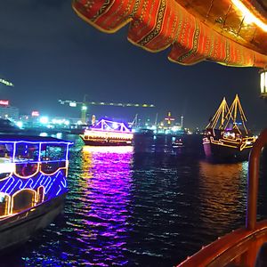 ゆっくりとクリークを、ドバイの夜景と、派手に電飾した他の船を見ながらのクルーズ最高でした。ディナーも美味しかった。