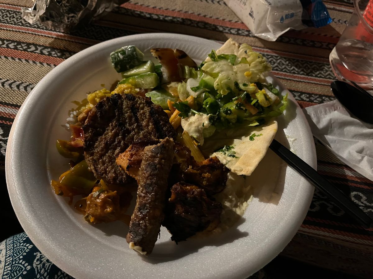 BBQは2回料理の提供がありました。最初に軽食、その後にケバブのような料理が出ました。2回の料理とも、同じ時間帯では、提供する箇所は複数ありますが、どこも同じ料理のようでした。私は2回の料理の提供があることを知らなかったので、最初の料理提供時に2回料理を取りに行き、お腹が膨れたところで、2回目の料理が出てきたため、2回目の料理を堪能することができませんでした。
