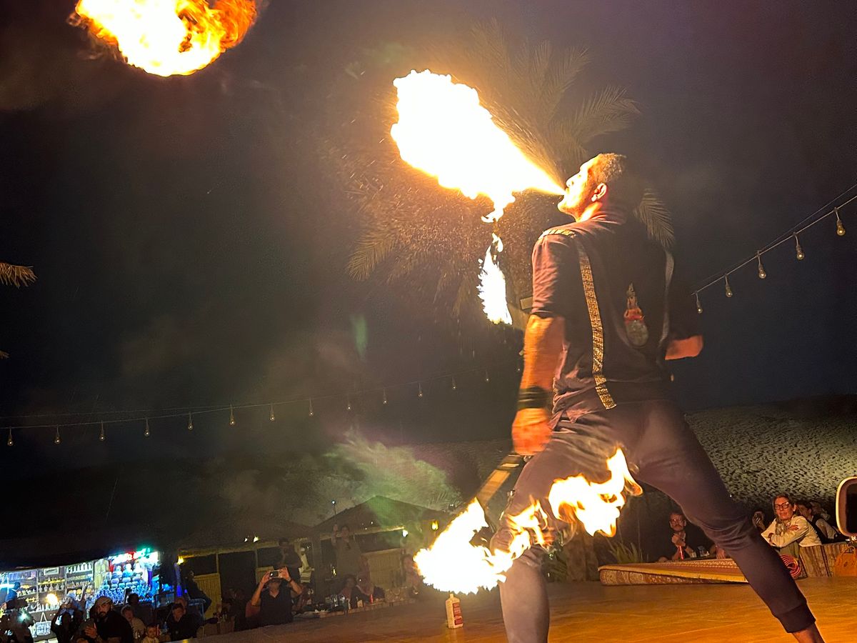 バギー、ラクダ、サンドボード、BBQ、ファイアーダンス、ベリーダンスととにかく盛りだくさん。