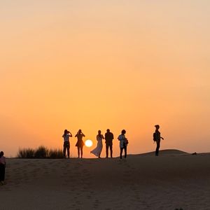 日本だと4年待ちだとか。外国人カップルと一緒になりました。英語が話せない私たちは、なかなか会話に入らなかったのですが、単語でなんとなくわかるように説明してくれて、とても親切なガイドさんでした。ついたころには、夕日が出始めていました。砂漠ツアーの始まりです。酔い止めを飲んだのですが、酔いました。でも、飲んでないと更にヤバいことになっていたかもと思ったので、飲んでおいて正解です。酔いましたが、砂漠ツアーはとても楽しかったです!写真を撮るために途中下車して、ガイドさんがたくさん写真を撮ってくれました。すごく綺麗に撮ってくれます。食事はバイキングではなく、サービススタイルでした。見た目的に心配していましたが、食べてみたらとても美味しかったです。量が多くて残してしまいました。ショーをやる頃には、とても眠たくなってしまいましたが、本当に満足なツアーでした。