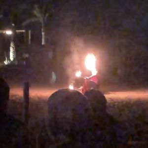 ラクダ乗りはほんの1分ほどで、ラクダに乗った と言う感じだけです。BBQはファイヤーショーを見ながら楽しめました。