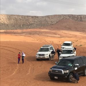 6人一組で ランドクルーザーで砂漠を駆け巡るツアーです。 とても迫力があって ジェットコースターに乗っているようでした。車がひっくり返らないかとドキドキして凄く楽しめました。