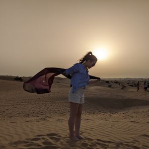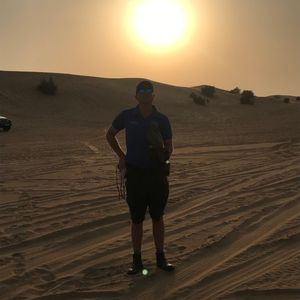 ドバイ最後の日に 朝3時の飛行機で帰宅でしたので 丁度い良い時間だと思い 参加させて頂きました!楽しみにしてた通り 砂漠のサファリ爆走はスリル満点で 鷹ショーも楽しめ ラクダも可愛かったし 夜のショーもとても楽しめました。英語ガイドドライバーのANIL BABUさんは 親切で陽気な方で 1人旅の私でしたが 写真も沢山写して頂き有り難うございました! 只 車のスリルに 車酔いしてた人も居て 念のため酔い止めや 夜は気温が下がるので 羽織る物も必要です。後砂が靴の中にかなり入りますから 変えのソックスも必要かと思います。