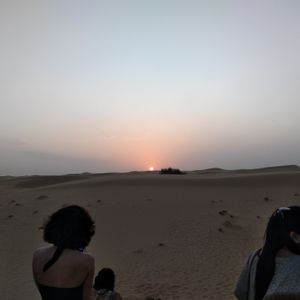 車酔いしやすいため、このツアーを選びました。念のため、砂漠に入る前にゆっくりでお願いしますと言いました。ドライバーさんは何度も大丈夫?と確認しながら砂漠を運転してくれました。急勾配を避けたゆっくりとした運転のおかげで酔うことなく楽しむことができました。食事は食べ慣れないものでしたが、味は美味しかったです。ヘナタトューは無料で楽しむことができました。水タバコはお金がかかります。夜の砂漠はとても冷えます。ダウンコートを持って行くことをおすすめします。
