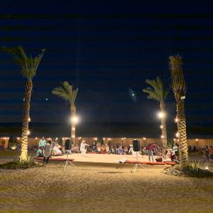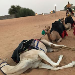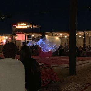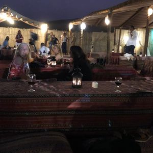 アラビアンBBQディナーは広い会場の割に人が少なくてちょっと寂しい感じ。多過ぎるよりいいですが、料理は期待したほどではなかったです。らくだに乗るのにたくさんの人が並びますが、皆が乗り終わった後、誰もいなくなってから乗ることが出来ました。夜は寒いかと思ってましたが長袖シャツで大丈夫でした。