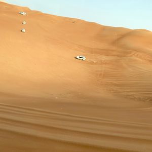 3時からのツアーに参加しました。一台の4WDには外国人の4人家族と私たち2人が同乗し、砂漠に向かいました。砂漠に着くと同じツアーで私たちが乗った4WDが10台ほど集まり、写真を撮ったり砂漠を走行したりしました。運転手さんもとってもいい方で、砂漠の走行中にも大丈夫?と気を遣っていただき、また冷えたお水もたくさんいただきました。このツアーにはカメラマンがいて、たくさん写真を撮ってもらいました。最後にその撮った写真を30DHで売っていて、思い出のものなので購入しました。そのほか料理や体験もとても楽しいものでした。おすすめです。