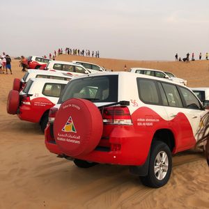最初は他社で同種ツアーの半額キャンペーンをやっていたので、そちらに申し込んでいたのですが、ピックアップ場所決定のため宿泊ホテル連絡しろ連絡が来たのに返信しても”OK”くらいしか返信こなかったりして、ちょっと不安になりまして、このオリエントツアーズに変更しました。オリエントツアーズではピックアップ場所も即時連絡が来るので安心です。レビューを見るとピックアップ時間で過去クレームがあったようですが、その改善策なのか、当日時間変更があった場合は日本語出来る担当者の方がメール、SMS、ホテルへの電話やらで丁寧に連絡をしてきてくれました。ツアーの内容ですが、ランドクルーザーに我々4人(大人2人子供2人)とギリシャから来た2人、ドライバー入れると計7人乗車。砂漠まで30分-40分くらいでしょうか・・・。子供の小学生低学年二人にはあらかじめ酔い止め飲ませておきました。砂漠体験にはちょうど良いくらいの時間でした。あれ以上長いと気持ち悪くなりそうです。写真撮って車で移動し、ラクダ牧場と鷹のショーをみて、さらに車で移動、キャンプに到着。ラクダに1-2分乗れて、ダンス見て、食事して楽しめました。食事は、現地でバーベキュー調理してました。この種のツアーでは食事がまずくて残念なことが多いのですが、このツアーは平均以上でおいしいほうでした。