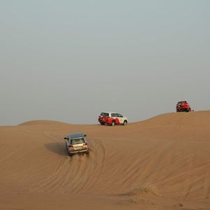 このツアーで最も思い出に残ったのは、なんと言っても砂漠ドライブです。15台くらいの4WD車がワンラインで砂漠をアップアンドダウンで駆け抜けるのです。