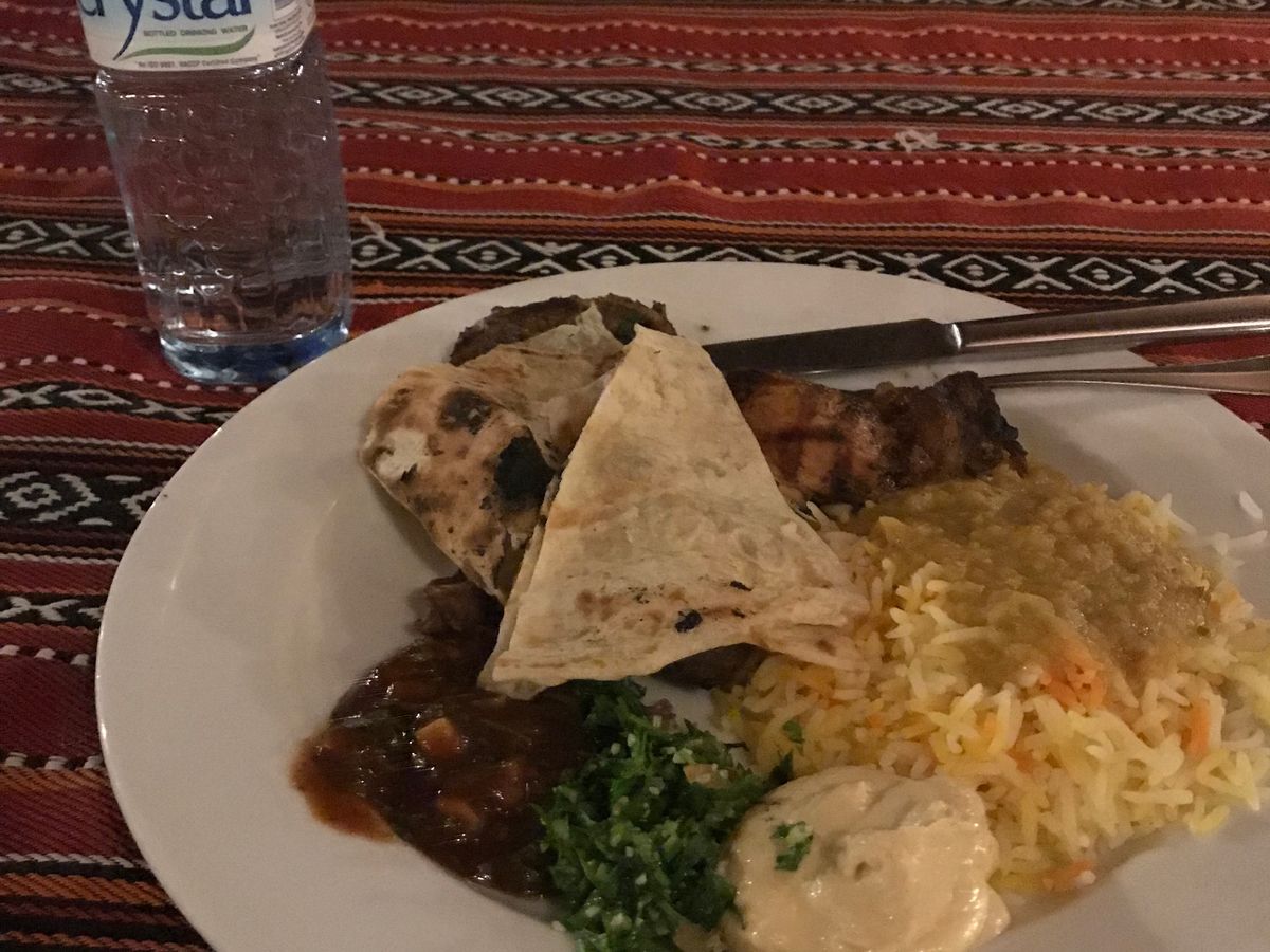 バーベキュー担当のドライバーさんは陽気な方が多く、どんどんお皿に乗せてくれるのですが全部OKしていると食べきれない量になるのでご注意ください。。あまりエスニックすぎる味付けもなく、とてもおいしかったです。少し塩気の強いものもありますが、お酒が進むメニューかと。なお、キャンプを出た後は、平坦な道を通って砂漠を出るのでお腹いっぱい食べても大丈夫です。