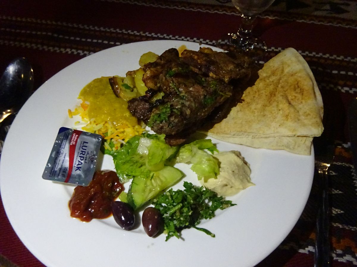 夕食ディナーでは一通りのアラブ料理も味わえて、ラクダ乗り体験もとても良い体験ができました。