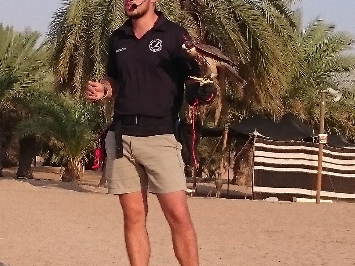 鷹狩りの見学です。色々、説明してくれているのですが、英語なので全くわか