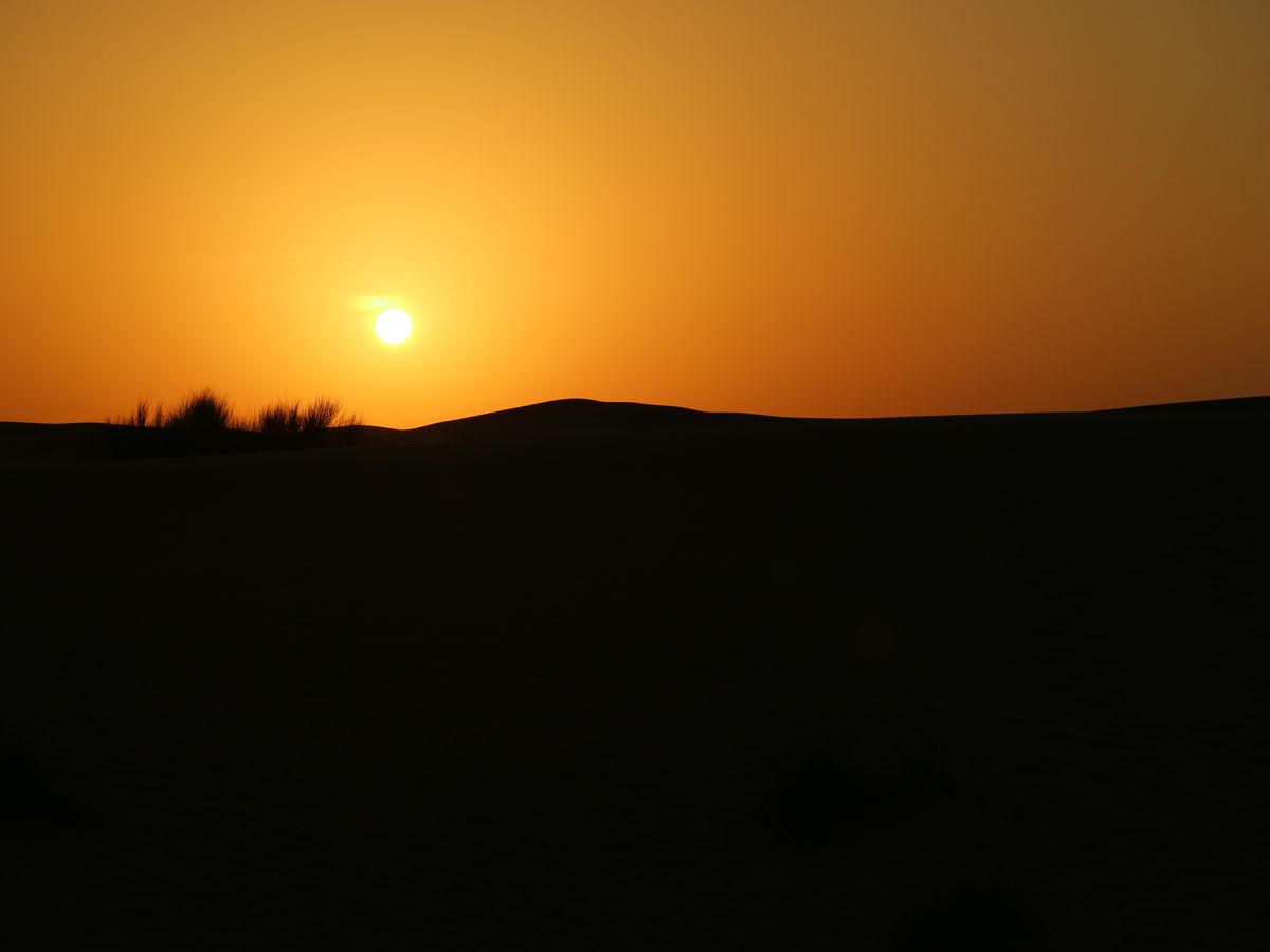 り、サンドボードしたり・・・。そうこうしている間に砂漠の地平線に夕日が