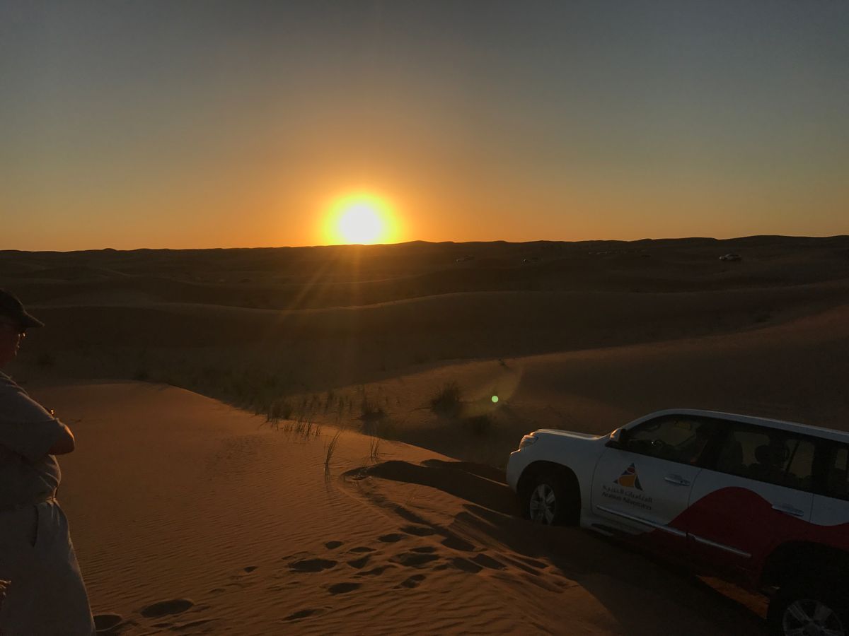 砂漠の中を車で走り抜けていくのがとても楽しかったです。ジェットコースターに乗っている感覚でした!乗り物酔いがひどい人はきついかもしれません。砂漠での夕日はとても綺麗で、ドライバーの方がいい写真をたくさん撮ってくれました!