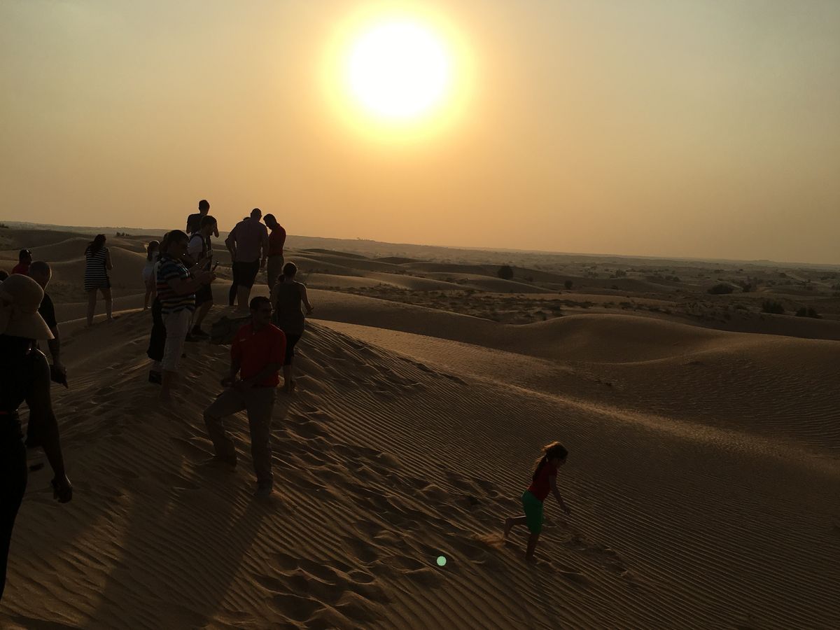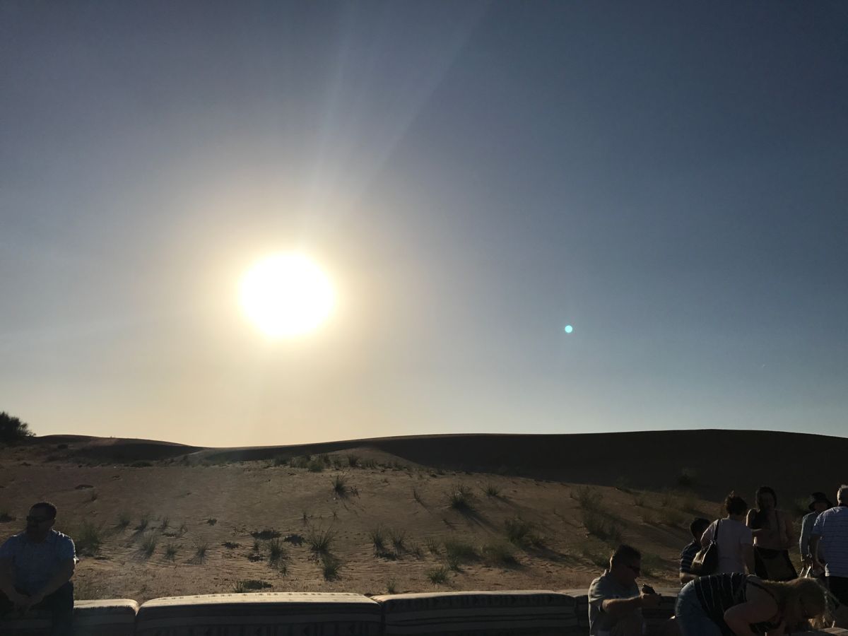 ラマダン2日目にアラサー女子2人で参加しました。同乗者はフランス人3人組とアメリカ人男性1人。砂漠ドライブはスリル満点でおもしろかったです!写真ポイントで車を降りると気温40度近くで暑いですが、車の中は涼しくていつでも乗り込めるので平気です。ラクダ乗りは短時間、しかも2人ずつ乗らないといけないので乗ってるとこの写真撮れない!というわけで4WD車に同乗してたアメリカ人男性に写真を撮ってもらいました(^^)サンセットの1時間前には会場?に到着。この頃には気温も30度くらいで暑さは平気でした。カウンターで無料のソフトドリンクゲット。おかわり自由!ラマダン中でもここは水分補給OKです!水タバコやタトゥーは人が多いので後回し。サンボードをする丘に歩いて登りました。けっこう高くまで登るので足腰体力いります。笑 けど誰もいないので貸し切り気分で写真を撮ったり景色を見てゆっくり過ごしました。砂漠も一望でき、サンセットも綺麗に見れたのでお勧めポイントだと思います!日が落ちたあとは水タバコやヘナタトゥーを楽しみ、夜ごはん。ベリーダンスのかわりに男性のファイヤーショーやグルグルまわるダンスがありました。8時半アクティビティ終了。ドバイで砂漠体験ができてよかったです(^^)