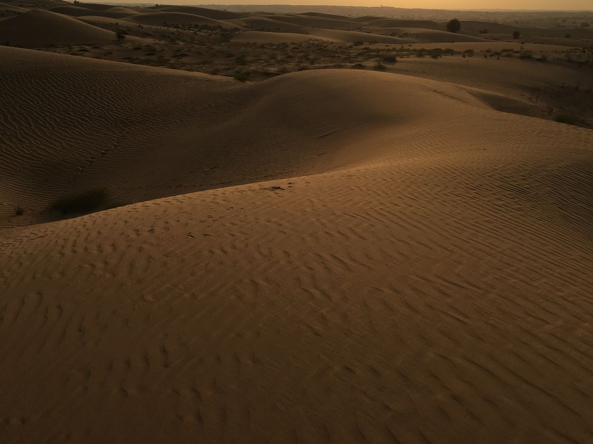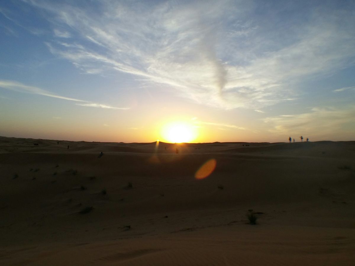 そのあと砂漠で夕暮れ鑑賞。ずっとずっと遠くまで続く砂漠景色が圧巻で印象的でした。