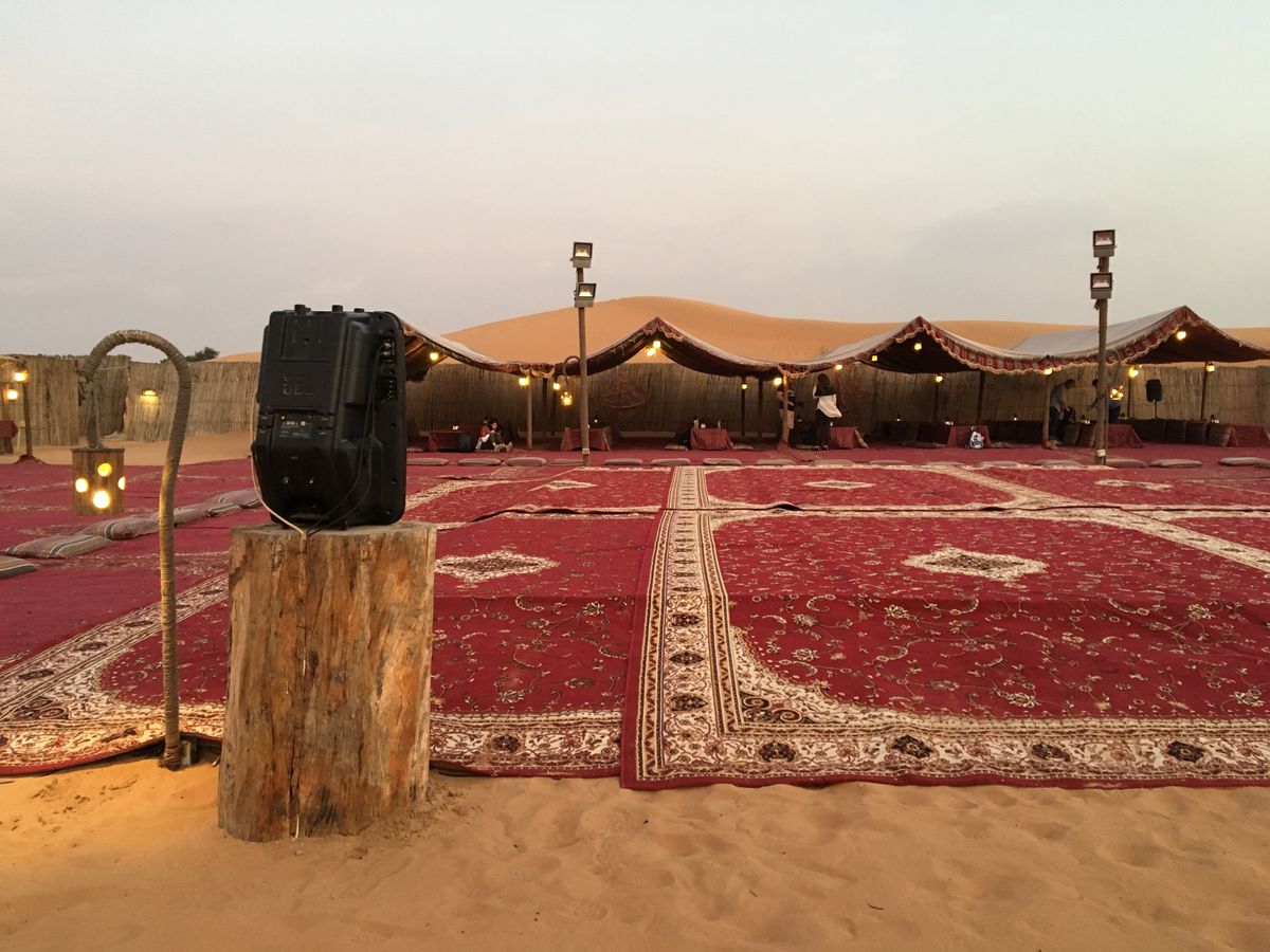 大興奮の後、キャンプ設営地に到着すると、今度は、ヘナペインティング、ラクダ乗り、隼、サンドボードと盛り沢山のアクティビティが待っています。ラクダの立ち方、座り方、座ってるポーズを間近で見るのが面白かったです。実際乗ってみるとしっかり握らないと振り落とされそうになるくらい揺れが大きかったです。また乗りたいです。夕暮れが近付くと青い空に人のシルエットが綺麗に映えて日本では味わえない空間だな~と感じました。パフォーマンスやダンスを見ながらバーベキューです。バーベキューを楽しみ夜はふけていきます。最後、砂漠の頂上にラクダを引き連れ夜空をバックにした光景はこれぞアラブの国だな~とまたまた感動しました。