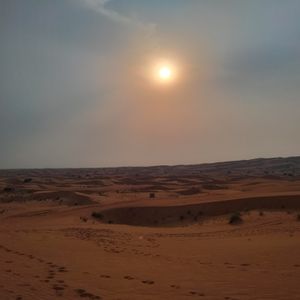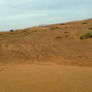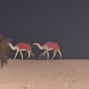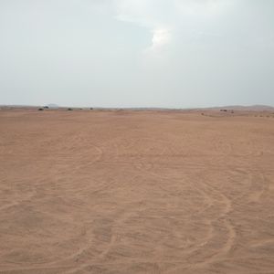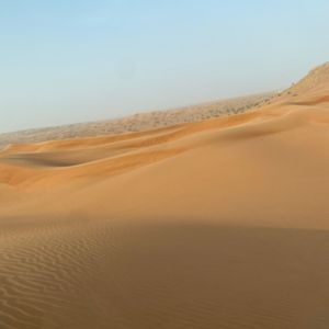ホテルピックアップ→移動60分(途中ガソリンスタンドでトイレ休憩)→ミーティングポイントで下車(別料金でバギーに乗れる。ちっとした売店。頭に巻くスカーフを勧められる。50AEDくらい。がそんなに強引ではない。)→再び乗車し砂漠を爆走→砂漠の屋外レストラン?に移動→ラクダに乗る、サンドボードで遊ぶ。→ダンスショー→食事→帰路