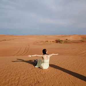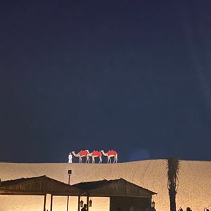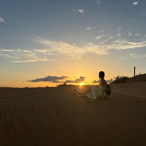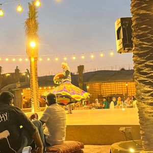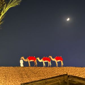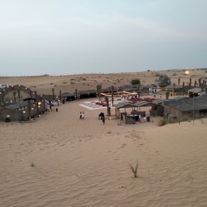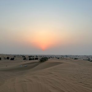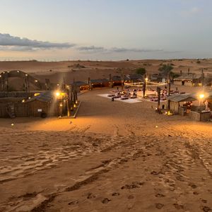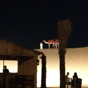 15時ごろに送迎の車がリビエラホテルの前に来てくれました。直前にベルトラのスタッフから到着時間の連絡がありました。運転手さんは口数少なく何も説明なく出発。笑 他のホテルで他の参加者をピックアップして砂漠へ。サンドバギー体験ができるところで一旦車を降りました私たちはバギー体験はせず、水 を飲んで休憩。その水が高い!!笑。砂漠なので貴重ですものね。そのご また車に乗り、砂丘ドライブ。何も言わずに始まりました。運転手さんが頑張って坂を上がったり、下がったり。思っていたより迫力はなかったかな。そしてサンセットの時間帯になりを降りてフォトタイム。良い写真が撮れました。その後は、ディナーとショーを楽しめるキャンプサイトに到着。ラクダ乗り体験を一瞬だけして、ディナー会場へ。正直ビュッフェご飯は微妙ですが、シーシャやファイヤーショーなど楽しめました。