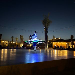 でも無事に会えて、そこからは快適なデザートサファリ体験でした。ファイアーダンス、ベリーダンス、BBQ、ラクダ乗り、水タバコ、ヘナタトゥーとメニューも盛りだくさんでした