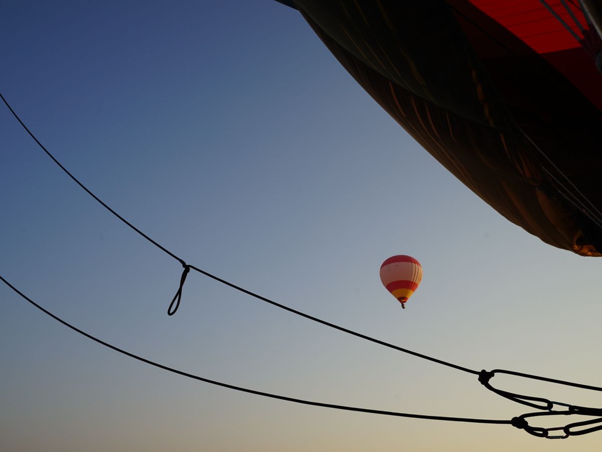 世界各国から来た参加者と共に気球に乗り、地平線(ただしくは朝霧)から昇る朝日を見ることが出来ました。