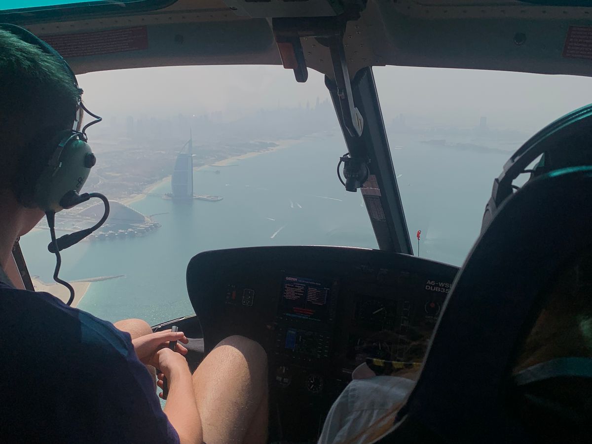 初めてのヘリコプター遊覧でしたが、事前にビデオでの注意事項説明・安全確認があり、安心して体験することが出来ました。荷物はロッカーに預けて、スマホだけ持っての搭乗です。ヘリコプターに乗るとヘッドホンのようなものを付けて、爽快な空の旅がスタート♪綺麗な海から続くビーチと街を上空から見たとき"The ドバイ"を感じました!上昇下降の際も揺れることなく、快適に体験できました。まさに一生に一度は体験したい、楽しさと感動で一瞬の12分間でした!
