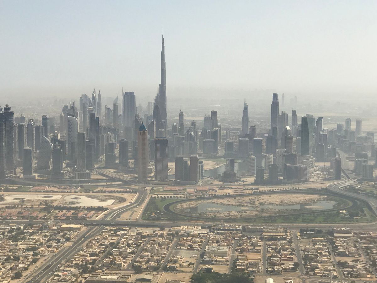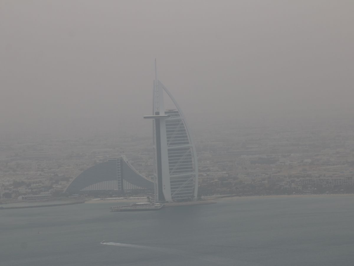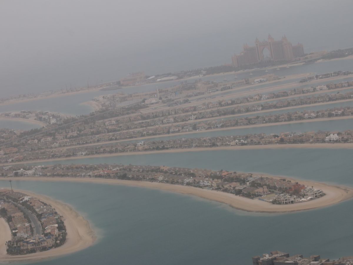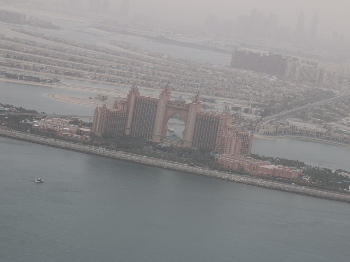 当日の天候は晴れでしたが、残念な事に少々砂煙で Burj Khalifa 付近はクリアに見えませんでしたが、今回の目的は、Palm Jumeirah を上空から見る事。