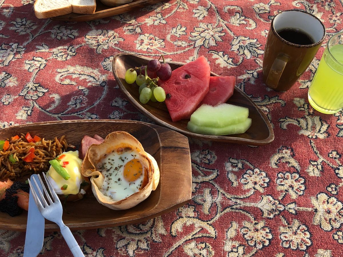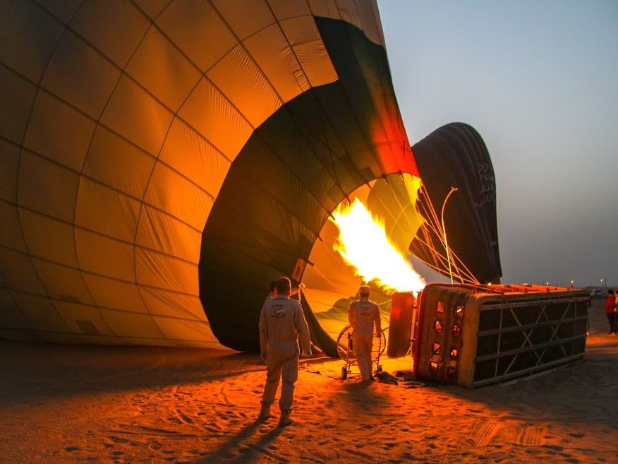 時間通りにお迎えに来てくれました。英語がほぼ話せない私達。笑 外国人しかいないです!雰囲気での会話笑 砂漠に着いたら説明があります。が、英語なのでさっぱりですがいざ、気球が膨らんでくると突然乗り込むタイミングがやってきます!雰囲気でわかります笑 気球が飛びたち感動の景色です。乗り込む時と着陸はかなりスリリングで面白かったです。英語がわからないのでさらにスリリングでした笑 その後オールドカーでキャンプサイトへ向かい朝食。雰囲気もあって美味しいです!砂漠なのにトイレは綺麗で驚き。気球の動画も150ディルハムでメールで送ってくれるので、パイロットに言ってアドレスを書いてください。いい感じに編集された動画が送られてきますょ。朝は早いですが朝の砂漠は綺麗で午後も有効に使えるので是非おすすめです。ドバイで一番良かったアクティビティは気球!
