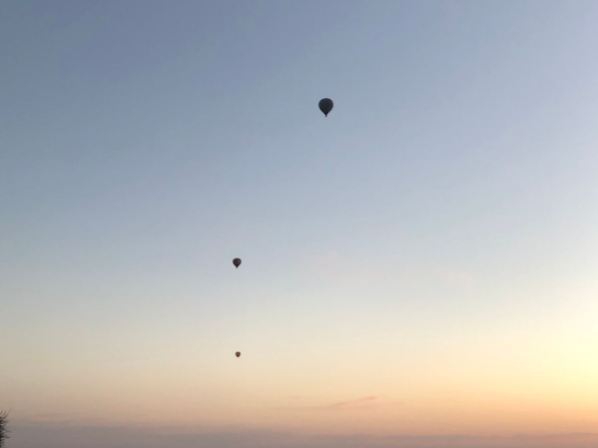 約1時間。GPSや無線でほかの気球との高さ、距離を把握しながら安全に飛行されていました。最高4000フィートほどまで上昇するそうです。かといって、耳が痛くなることもありませんでした。周囲が明るくなると、ガゼルなどの動物も「あそこにいるよ」と教えてもらえました。途中、鷹を飛ばして戻ってくるという芸が見られるはずでしたが…帰ってきませんでした笑みんなで呼びかけたり、操る方にフォローしたり、ある意味バスケット内は一体感がありました笑