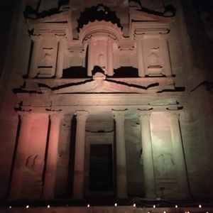 ペトラに着いた初日の夜に参加しました。その日は午後に到着したので遺跡に行くには中途半端だったので、このイベントに参加できてよかったです。特に案内やガイド、お迎えもなく、ホテルのスタッフからチケットが渡され、遺跡入口に行くと、あとは勝手にほかの観光客と一緒に突き進んでいくという感じでした。早歩きで30~40分歩くと、会場のエル・ハズネに到着します。途中のシークという細い道は、キャンドルだけではちょっと怖かったです。ほかのツーリストがいたので、助かりました。会場では紙コップでミントティーがふるまわれ、ベドウィンのおじさんがなにやら話はじめ、演奏もあります。眠くて寝てしまいましたが・・・とても美しいので、一見の価値ありです。チケットは当日、ビジターセンターでも買えると思います。