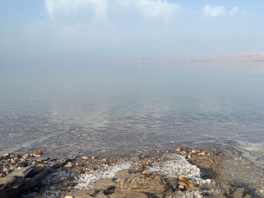 天候不良で死海では波が高く浮家ませんでしたが水温は高く、入水体験はできました。
