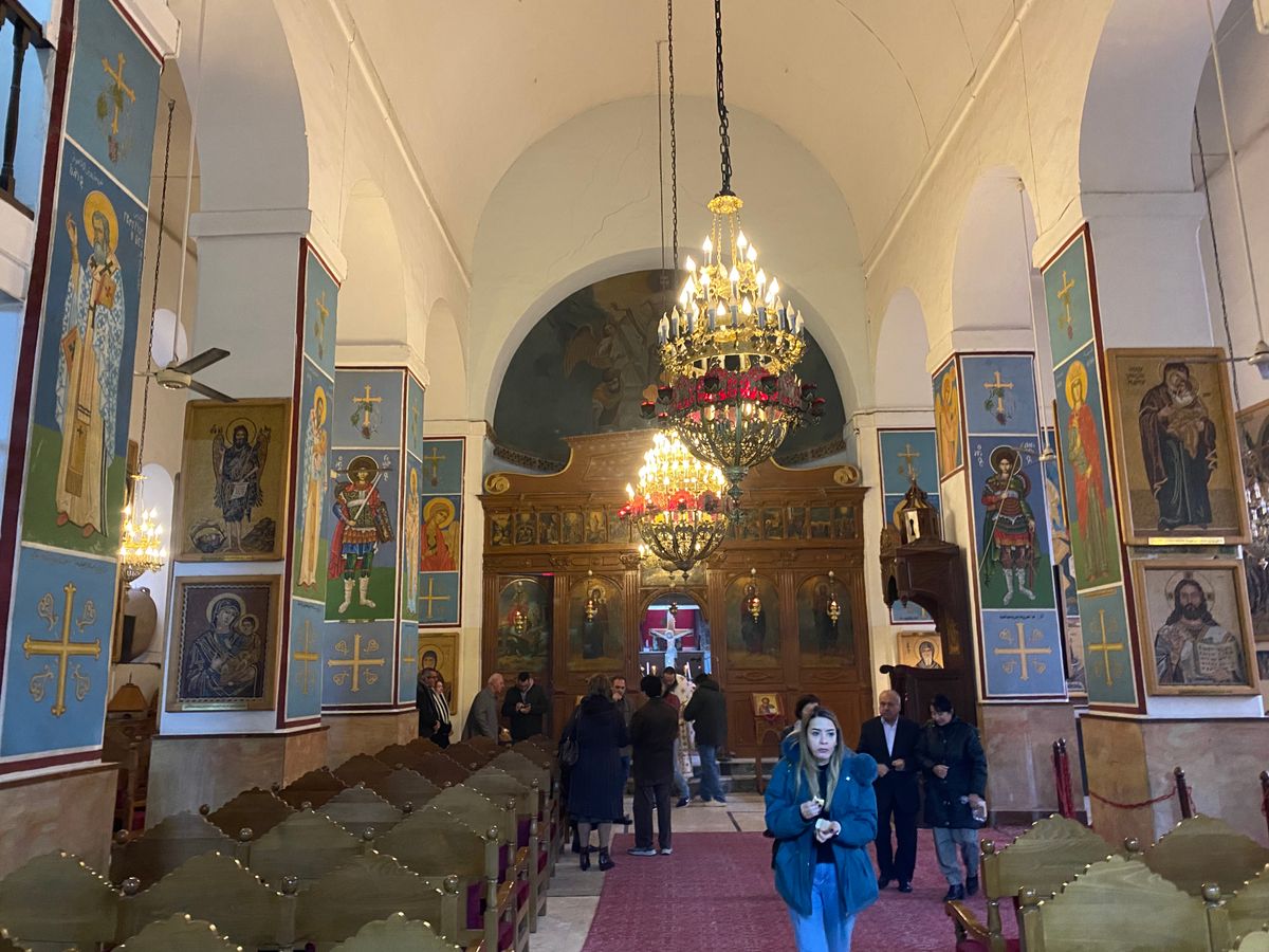 当日は休日で朝の交通渋滞も無く、マダバのギリシャ正教会の礼拝中に聖ジョージ教会に到着。礼拝後教会床のモザイクを見学しネポ山頂の教会とガイドさんが丁寧に説明してくれました。